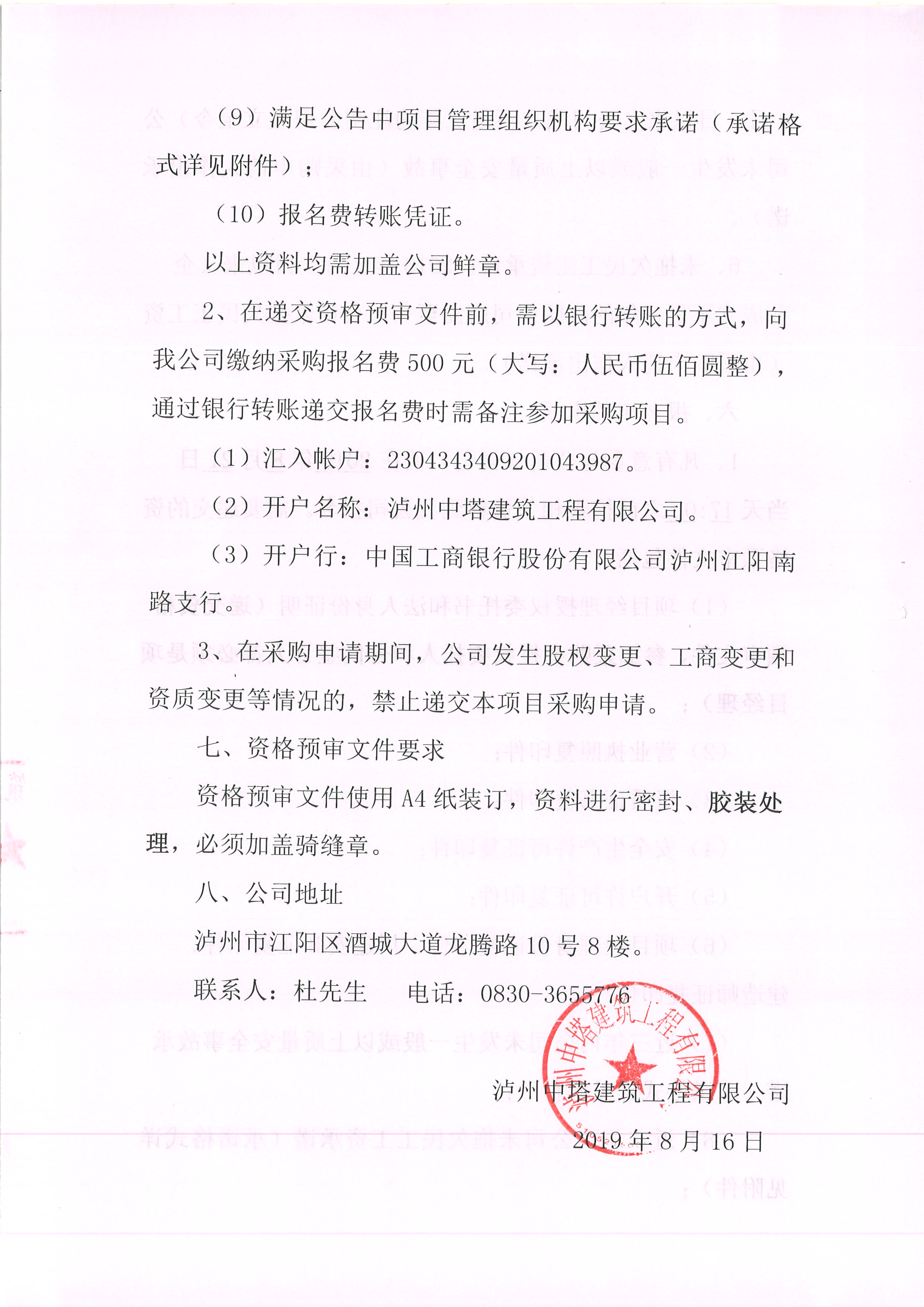 公開選取江陽區(qū)510500-2019-B-011號地塊項目土石方工程專業(yè)承包單位的公告